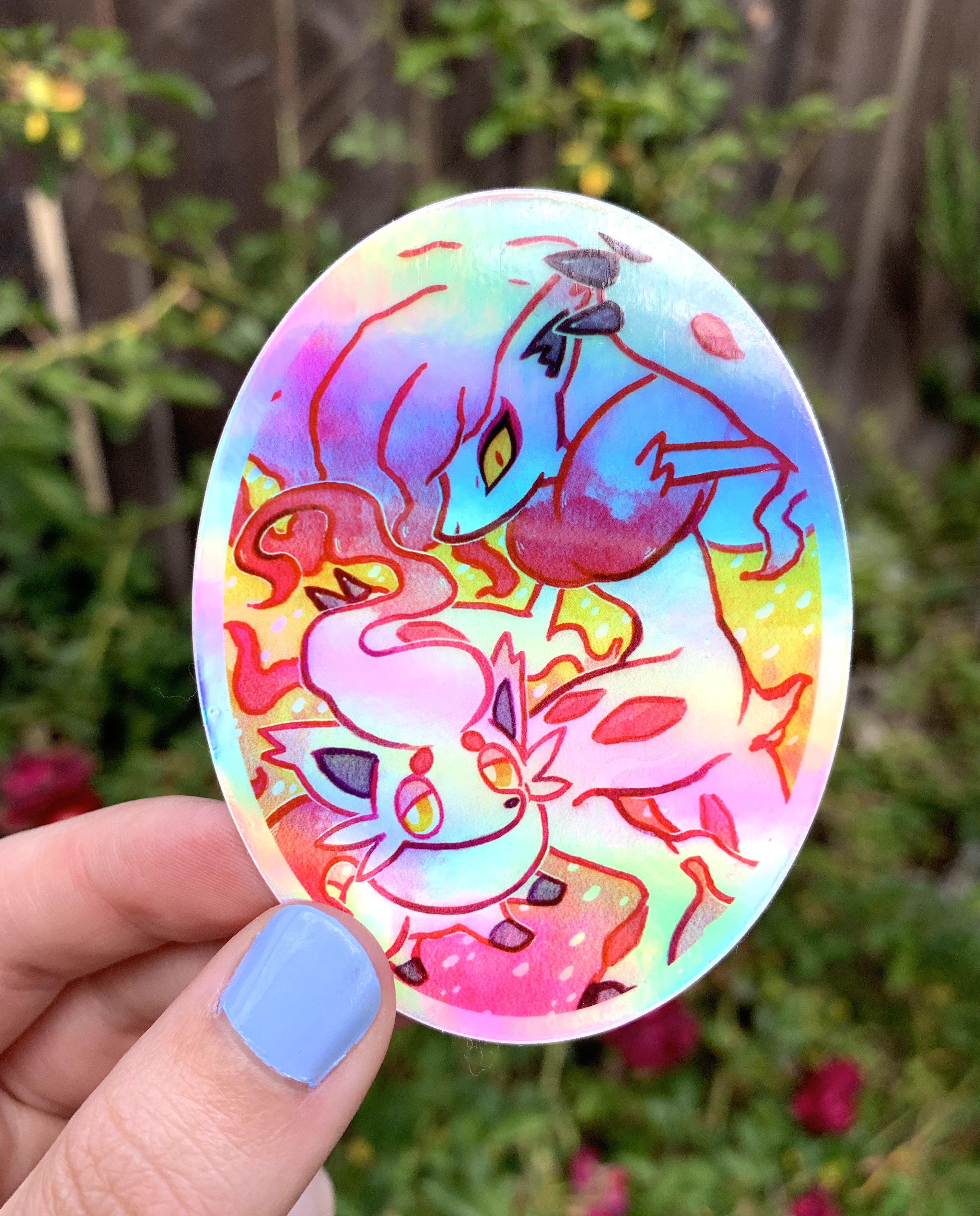 A holographic sticker featuring Hisuian Zoroark and Zorua.