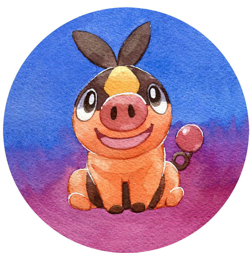 A big 2.5 inch button featuring watercolor artwork of Tepig! A pin on the back lets you show off your style on your backpack, jacket and more.