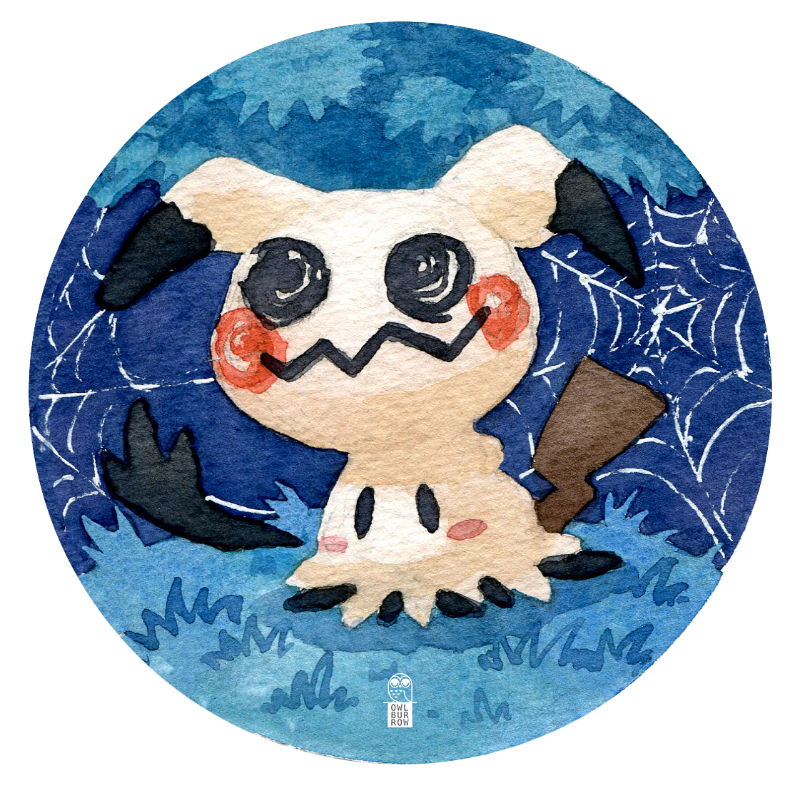 A big 2.5 inch button featuring watercolor artwork of Mimikyu! A pin on the back lets you show off your style on your backpack, jacket and more.