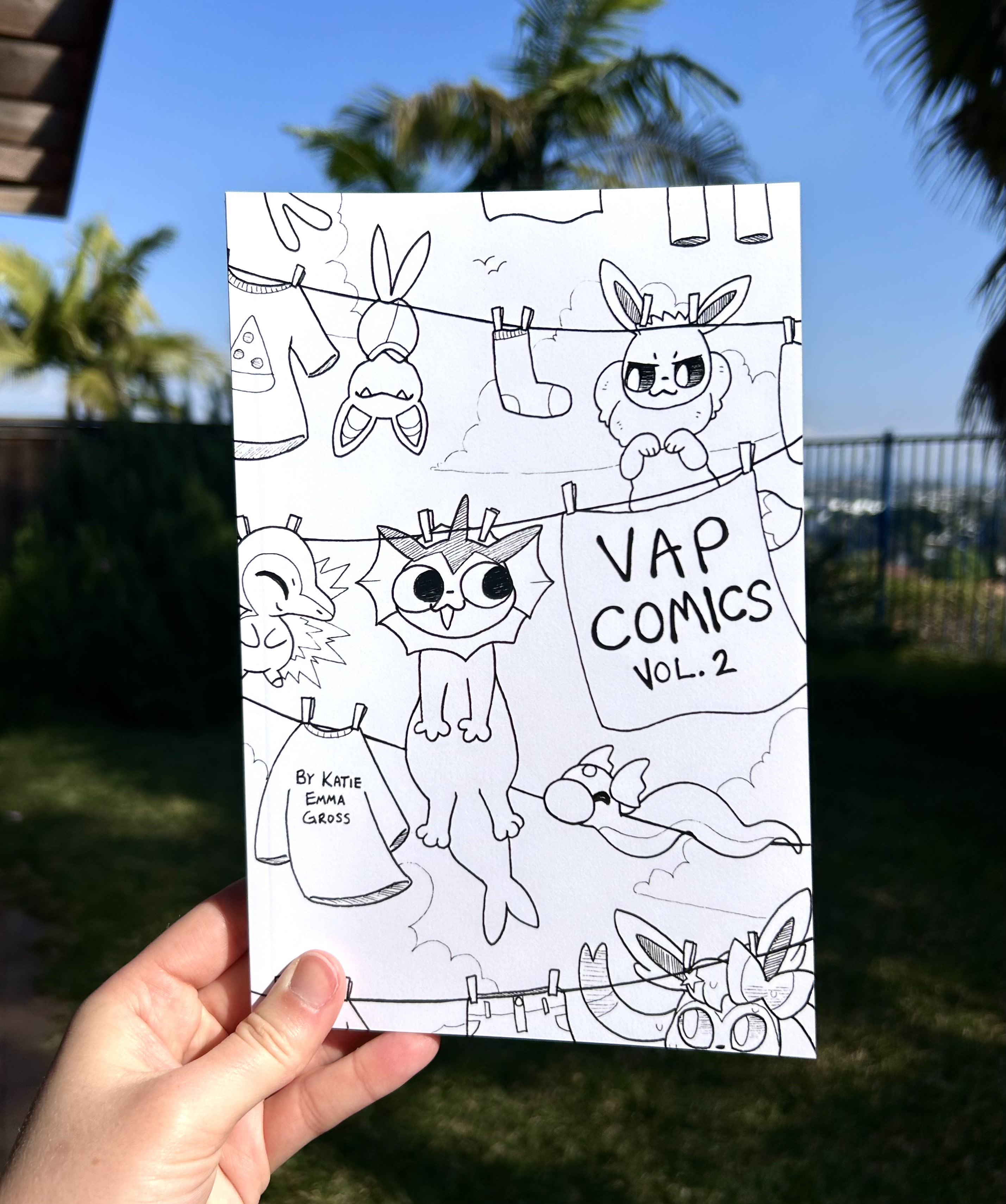 A full set of all 3 Vap Comic books, containing over 430 comic strips total! Comes with a free sticker and signed TCG card.
