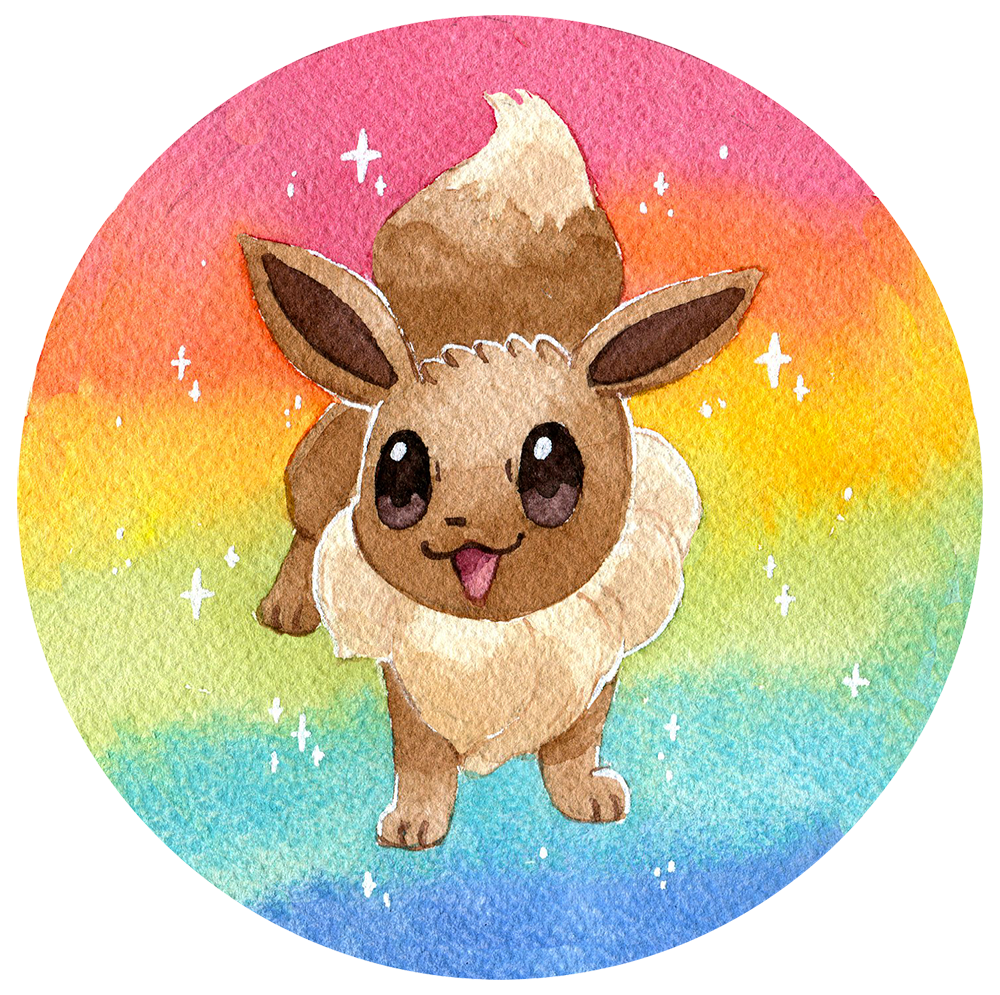 A big 2.5 inch button featuring watercolor artwork of Eevee! A pin on the back lets you show off your style on your backpack, jacket and more.