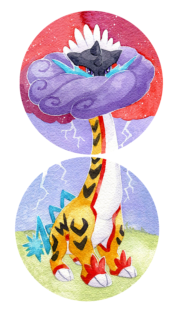 Raging Bolt is too big to fit on just one button! A set of two buttons featuring watercolor artwork of this variant of Raikou. A pin on the back lets you show off your style on your backpack, jacket and more.