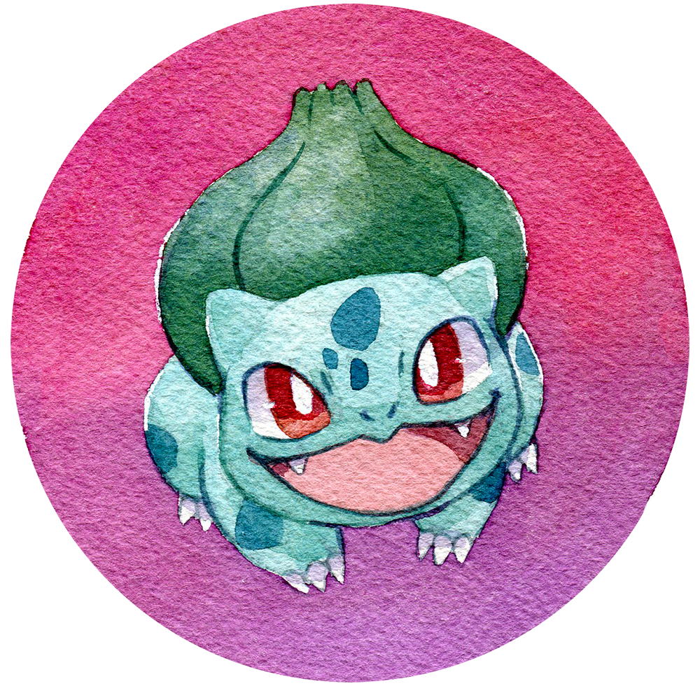A big 2.5 inch button featuring watercolor artwork of Bulbasaur! A pin on the back lets you show off your style on your backpack, jacket and more.