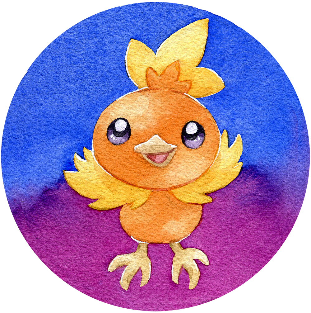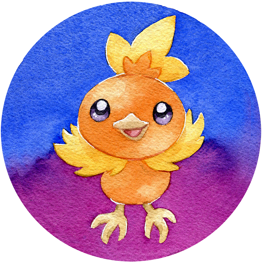 A big 2.5 inch button featuring watercolor artwork of Torchic! A pin on the back lets you show off your style on your backpack, jacket and more.