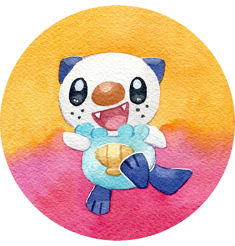 A big 2.5 inch button featuring watercolor artwork of Oshawott! A pin on the back lets you show off your style on your backpack, jacket and more.