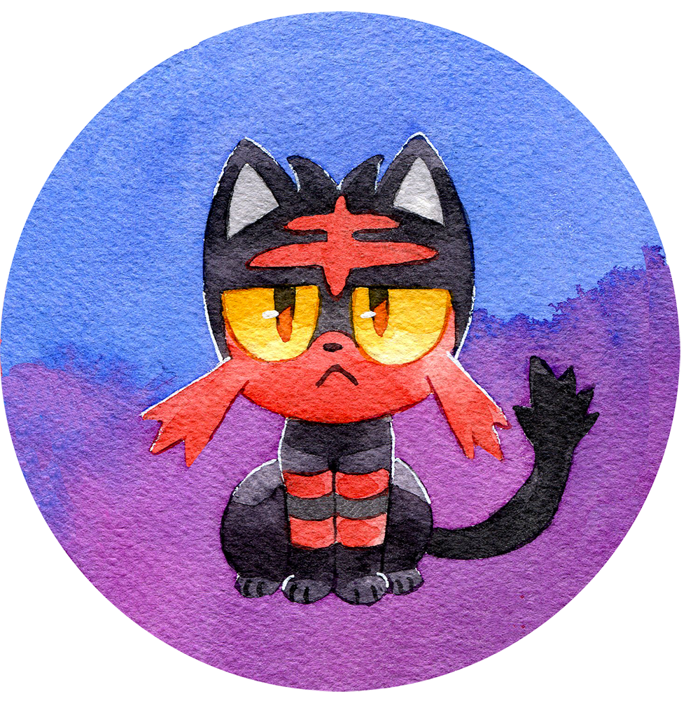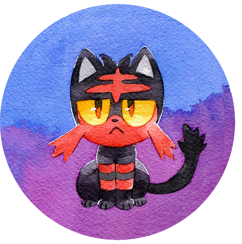 A big 2.5 inch button featuring watercolor artwork of Litten! A pin on the back lets you show off your style on your backpack, jacket and more.