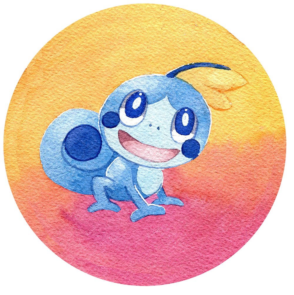 A big 2.5 inch button featuring watercolor artwork of Sobble! A pin on the back lets you show off your style on your backpack, jacket and more.