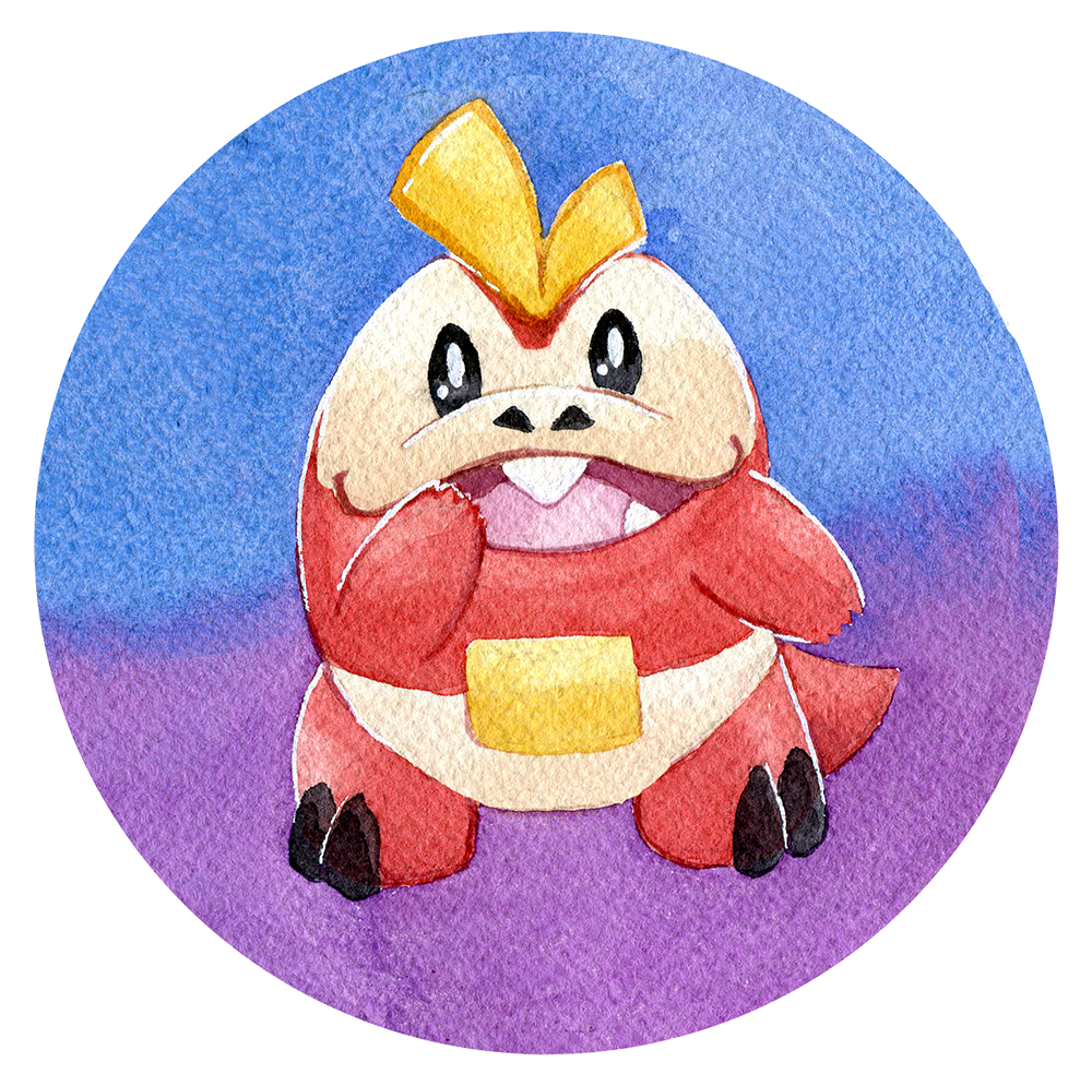 A big 2.5 inch button featuring watercolor artwork of Fuecoco! A pin on the back lets you show off your style on your backpack, jacket and more.